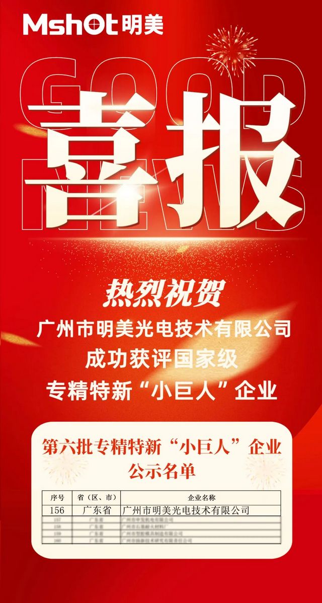 9月2日,廣東省工業和信息化廳發布了《關于廣東省第六批專精特新“小巨人”企業和第三批專精特新“小巨人”復核通過企業名單的公示》,明美光電成功通過嚴格的評審和綜合評估,獲認定為國家級專精特新“小巨人”企業,這是對明美光電在顯微成像系統領域自主創新能力、產品研發能力、未來發展潛力等綜合實力的高度認可。