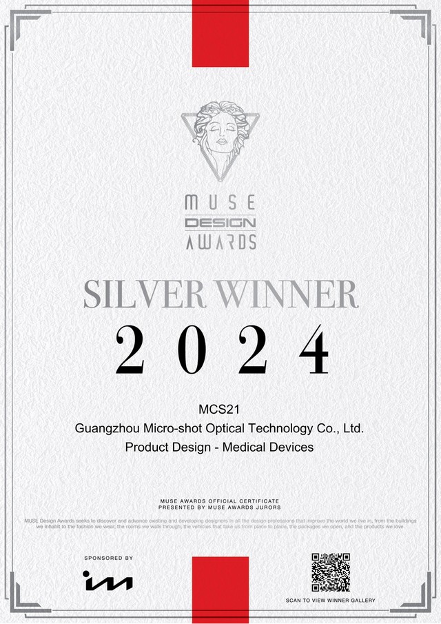 美國Muse(繆斯)設計獎創辦于2015年,是一項針對來自各設計領域創意專業人士及公司的國際設計競賽,該獎項由美國國際設計獎項協會(IAA)主辦,是極具國際影響力的獎項。明美Mshot活細胞成像儀獲得此獎,說明這款產品在設計理念,儀器功能上得到大家的認可和肯定。