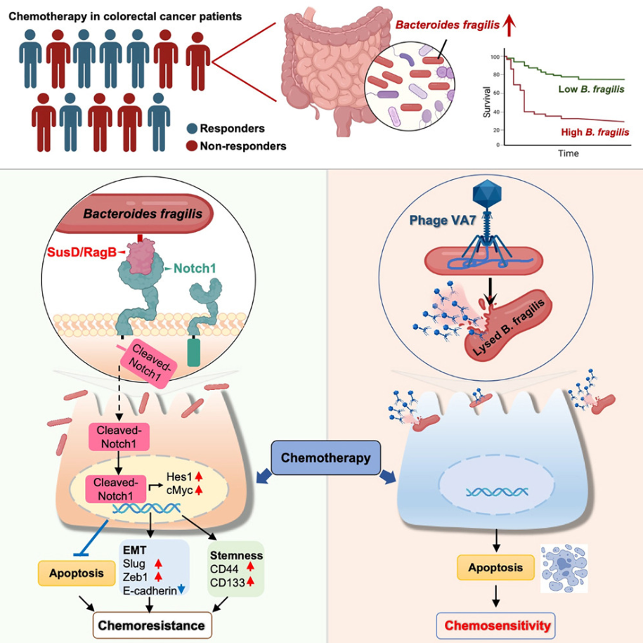 本文配圖均來源于:Xiao Ding 等. Bacteroides fragilis promotes chemoresistance in colorectal cancer, and its elimination by phage VA7 restores chemosensitivity. Cell Host & Microbe, Cell Stem Cell, 2025, 33 (6): 941-956.e10 DOI: [10.1016/j.chom.2025.05.004]